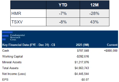 - Near-Term Revenue: HMR has established a near-term revenue pathway through high-purity silica sales. The company recently landed a 12-month sales and distribution agreement with Cristal Sand Group (a Brazil-based supplier of high-purity industrial sand for the luxury construction market), marking its first binding sales agreement.